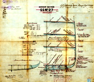 Bell社で建造された薩摩丸(27番船)の中央横断面図.次に建造された長門丸(28番船)は同型.なお26番船は郵便汽船三菱会社の東京丸(TOKIO